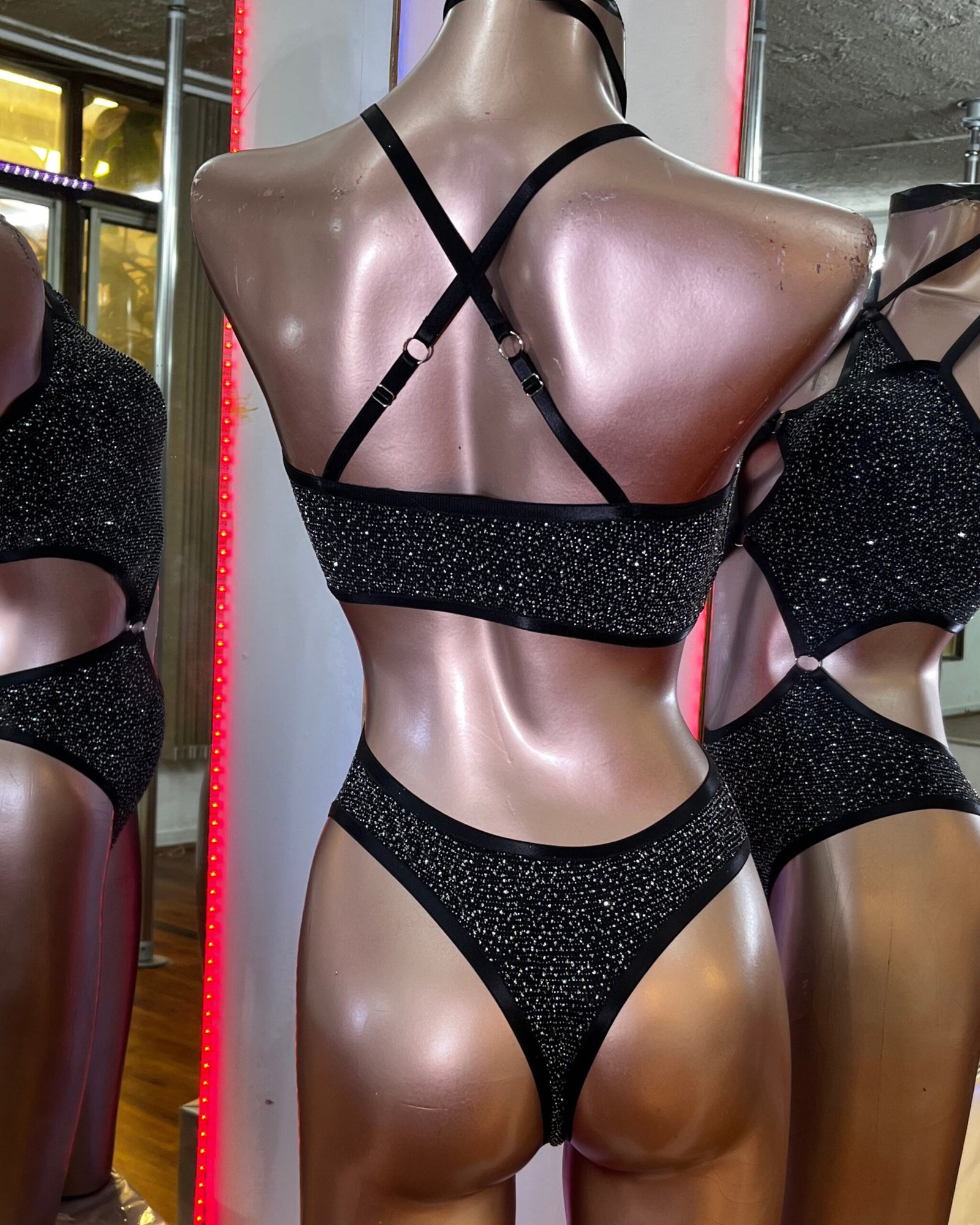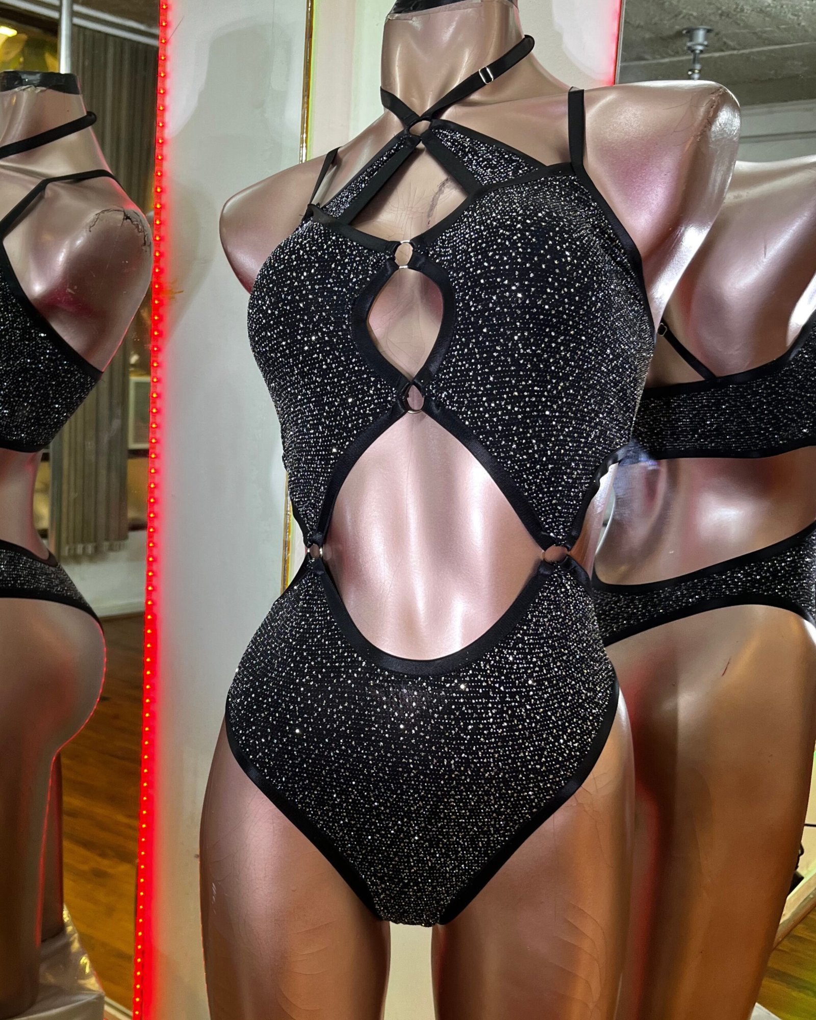 - Body Argollas, confeccionado en malla decorada con cristales brillantes que le dan un efecto gliter único , completamente forrado.