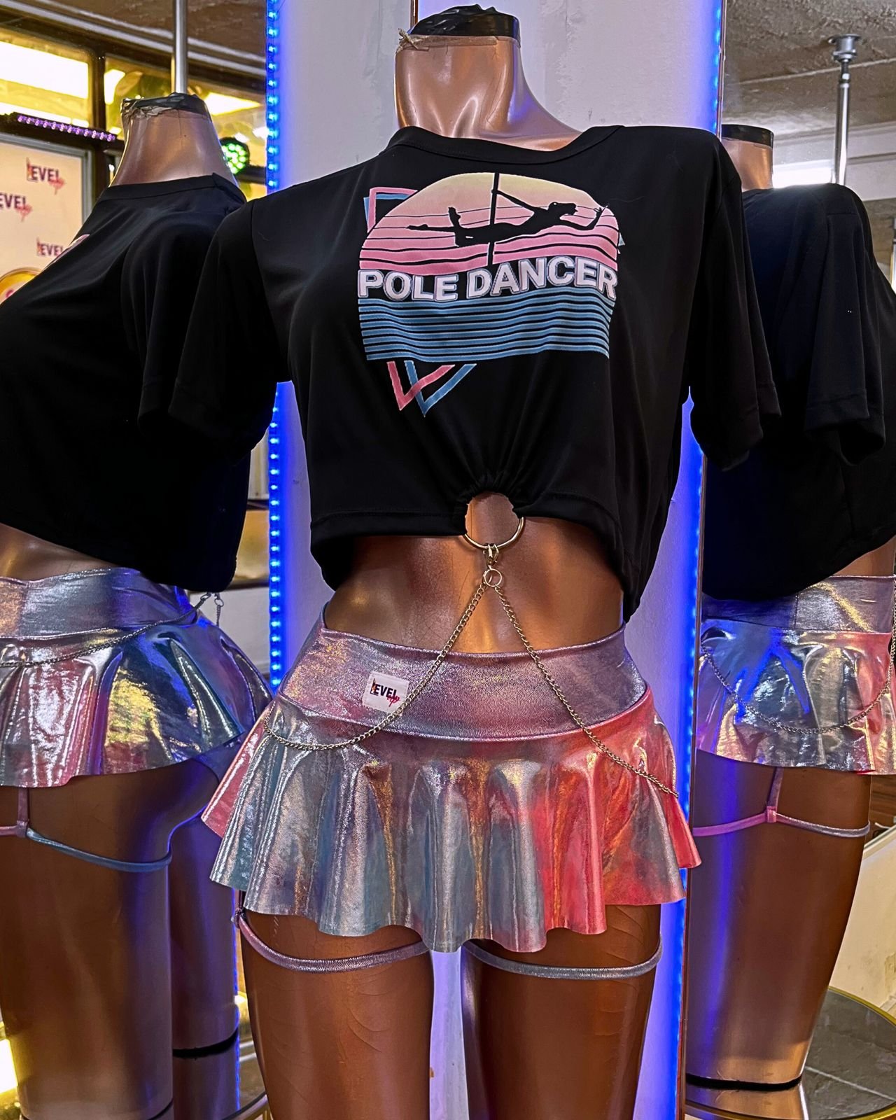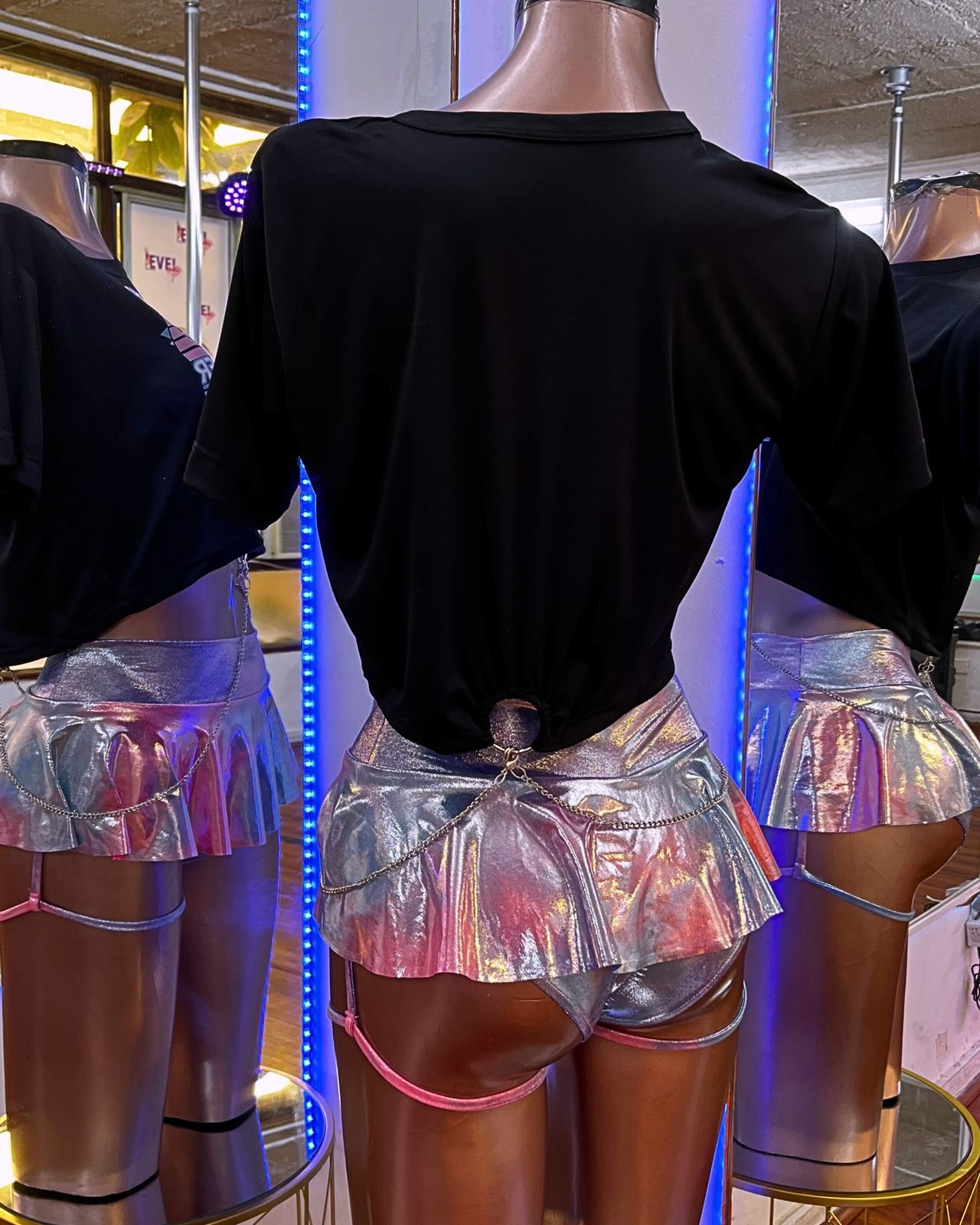 Hot Pants Twerk Pole Lazy, plateado-rosa con ligas y minifalda